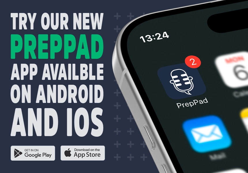 Get access to our all new PrepPad app available on Apple IOS App Store and Google Play for Android.